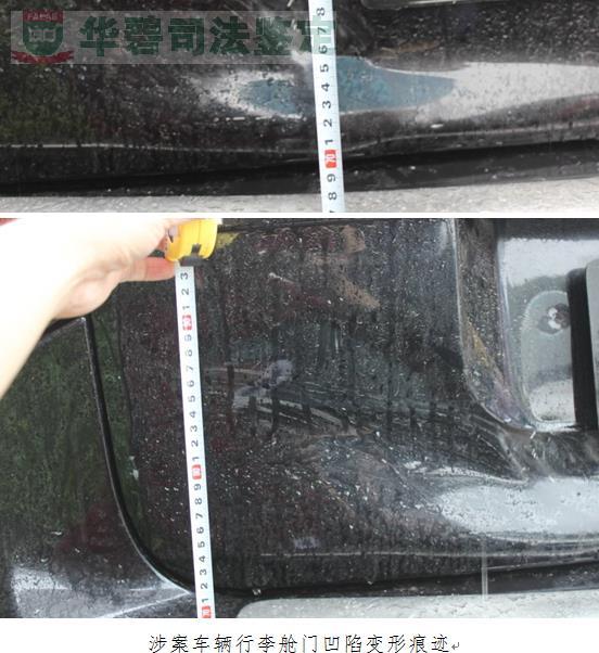 受理日期: 2015年06月08日 2015年06月08日,某保险股份有限公司苏州市分公司承保的苏****卡宴驾驶员报案称车辆在苏州市某区倒车时与墙柱发生接触碰撞,造成车辆后部受损。某保险股份有限公司苏州市分公司委托我单位对上述事项进行技术鉴定,我单位受理了此鉴定。华碧鉴定所根据现场勘验情况、实验室物证检测数据与结果,以及相关国标等进行验证试验与综合分析,做出了综合判断,鉴定出,悬挂苏****号牌的轿车后保险杠破损痕迹符合本次涉案车辆与涉案墙柱发生接触碰撞的痕迹特征;行李舱门的不规则凹陷变形痕迹和左后尾灯的破损痕迹均不符合本次涉案车辆与涉案墙柱发生接触碰撞的痕迹特征。