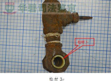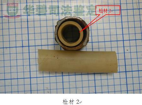 1、样品清单:截下来的水管2节,分别命名为检材1和检材3;未截下来的水管1节,命名为检材2