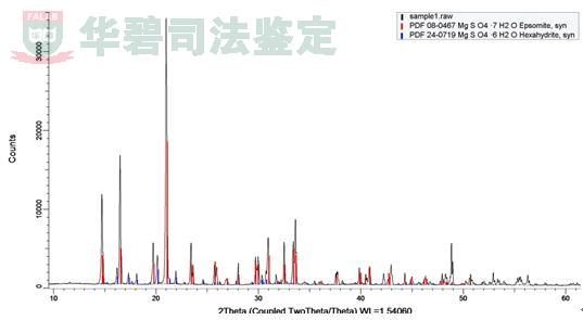 受理日期:2015年09月08日 江西省某市公安局为查明黄某被诈骗案,委托我所对前述事项进行物证鉴定,我所受理了此鉴定,华碧鉴定所根据现场勘验情况、实验室物证检测数据与结果,以及相关国标等进行验证试验与综合分析,做出了综合判断,鉴定出,送检检材并非二苯甲酰酒石酸一水物,是硫酸镁。