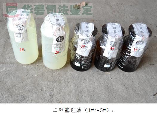 受理日期:2013年07月26日;申请人江苏省某市某电气有限公司与被申请人江苏省某市某新材料有限公司因买卖合同纠纷一案诉至江苏省某市某区人民法院,该院委托我所对前述事项进行物证鉴定,我所受理了此鉴定,华碧鉴定所根据现场勘验情况、实验室物证检测数据与结果,以及相关国标等进行验证试验与综合分析,做出了综合判断,鉴定出,因某标准中无涉案二甲基硅油的判定指标,故按照《合同》进行判定。1#~3#、5#的闪点不符合《合同》要求;4#、5#的密度不符合《合同》要求;5#的折光率不符合《合同》要求;1#、2#、4#、5#的挥发分不符合《合同》要求。涉案二甲基硅油1#~5#的运动粘度分别为: 122 mm2/s、98 mm2/s、97 mm2/s、95 mm2/s、82 mm2/s;粘温系数分别为:0.59、0.60、0.61、0.62、0.62;倾点分别为:<-52℃、<-52℃、<-52℃、<-52℃、<-48℃;相对介电常数分别为:2.71、2.71、2.73、2.68、2.60;酸值分别为:0.004 mgKOH/g、0.02 mgKOH/g、0.03 mgKOH/g、0.009 mgKOH/g、0.04 mgKOH/g。以上检测结果不作判定。