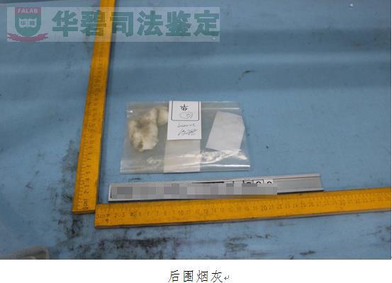 (2)取回样品清单:驾驶室线束1袋、后围烟灰1袋、底部烟灰1袋、燃烧残留物1袋、附着物1袋及底盘前部烟灰1袋