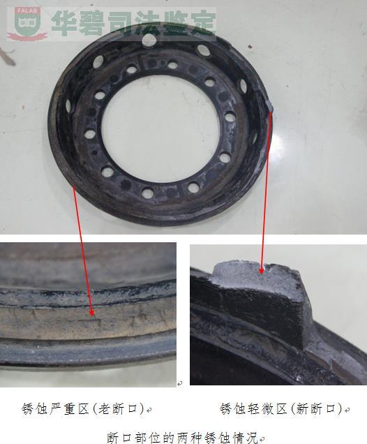 受理日期: 2014年09月02日 2012年09月14日,黑龙江省某市某区路某轮胎维修工孔某在给货车(前四后十)卸右后轮外胎时,内轮胎爆裂,钢圈与钢圈顶分离崩出,钢圈顶将孔庆东双小腿击伤,某市某区人民法院受理了该健康权纠纷。该院委托我所对货车右后轮爆裂钢圈顶飞出原因进行物证鉴定,我所受理了此鉴定,华碧鉴定所根据现场勘验情况、实验室物证检测数据与结果,以及相关国标等进行验证试验与综合分析,做出了综合判断,鉴定出,涉案货车右后轮爆裂钢圈顶飞出与该车拆卸轮胎之前已经存在的轮辋局部开裂的物证特征存在因果关系。